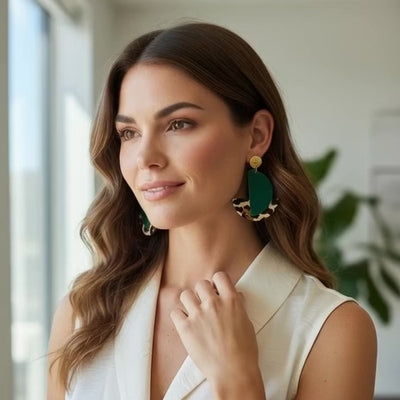 Les boucles Valeria incarnent l'élégance moderne avec leur design géométrique épuré. Ornées d'un motif léopard captivant rehaussé d'une touche de vert subtile, elles apportent une dimension tendance à votre look. Parfaites pour affirmer votre style avec audace, ces boucles allient sophistication et originalité. Un accessoire incontournable pour transformer instantanément votre apparence et exprimer votre personnalité unique.